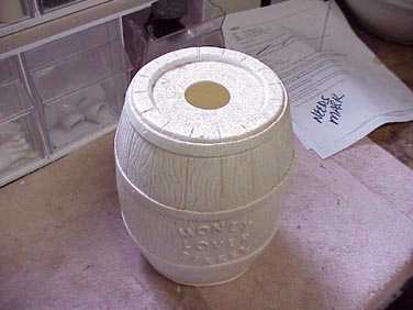 Take the Barrel and drill a 1 1/4" hole in the top. Make sure it is centered. I use a