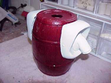 Here's the painted Barrel with the vacuformed shoulders and upper arms attached passing