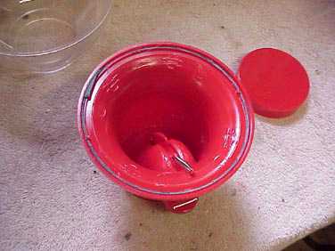 Paint the barrel, engine block and head Testor's #1629 Ruby Red Metalflake.
